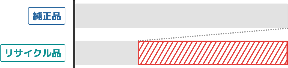 メーカー純正品の使用済みカートリッジを回収し、洗浄と修理、摩耗した部品を交換し、再生された製品です。高品質なリサイクル品の印刷枚数や品質は純正品と同等です。価格はとても安価でコストパフォーマンスに優れており、印刷コストの削減を重視する方に向いています。またカートリッジの再利用は廃棄物の削減と資源の再利用を促し、環境保護にも貢献します。ただし再生過程の性質上、純正品よりも不具合率が高い傾向にあるため、製品交換や本体修理など保証やサポート体制が充実した製品を選ぶのが重要です。